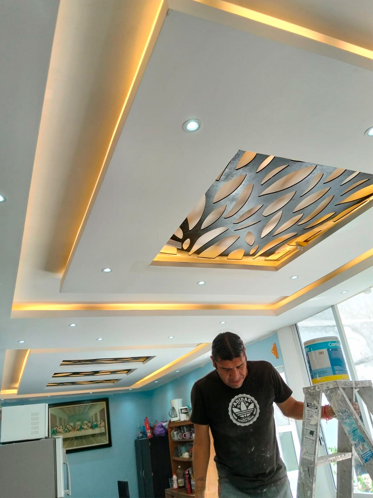 Diseñamos e instalamos decoraciones de interiores y exteriores con tablaroca (panel de yeso), ofreciendo soluciones versátiles como muros divisorios, techos falsos, nichos, libreros integrados, centros de entretenimiento modernos y mucho más